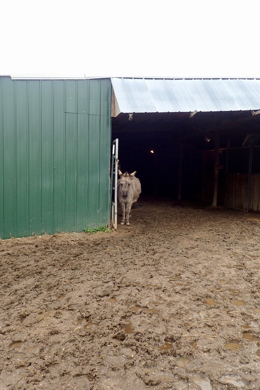 Overnight the weather was frightening! We felt better that we had Iris and Rose with us in the stable. They got a brushing, as you can see from the hair under Iris: