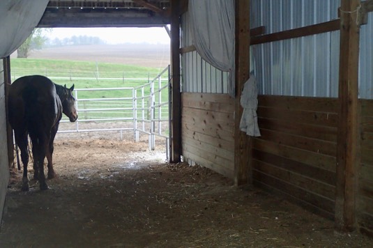 Stormy says, “Good freezing morning! I just walked in from the far pasture.”