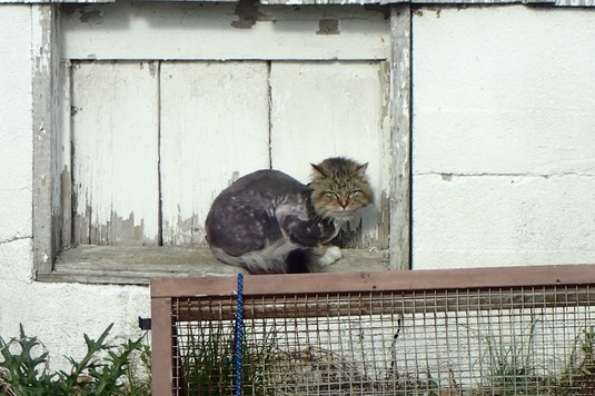 The cat-cops discourage this: if the chickens get a taste of egg, they’ll find out how delicious they are! 🐔