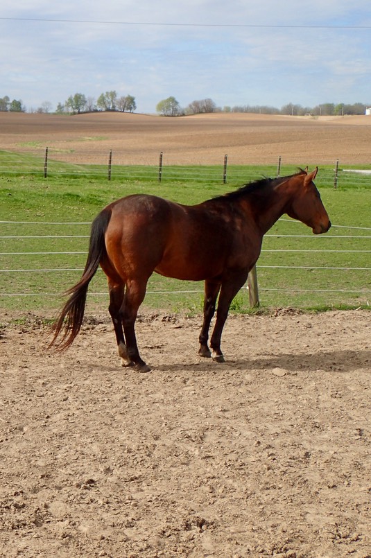 Iris and Rose are back out in their pasture. There’ll soon be plenty of grass to eat instead of (and in addition to) hay. You can see the green is coming: