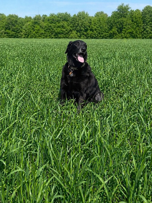 And here is Dukie, in Farmer Rich’s hay field, way down by the Hennepin Canal. She and Ann had quite a hike yesterday: