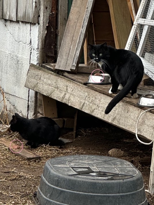 And in the tradition of all the cats at the farm, Marbles is trying mealworms: