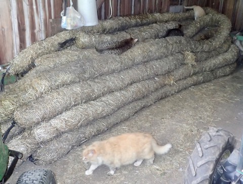 We’re supposed to use these giant, hay-filled snakes to fix the hill on the near pasture. They’re supposed to keep the dirt from washing away and let the underground water drain. (Right now the pasture is a big slope of water-filled holes.) 🐴