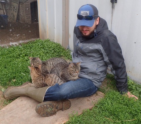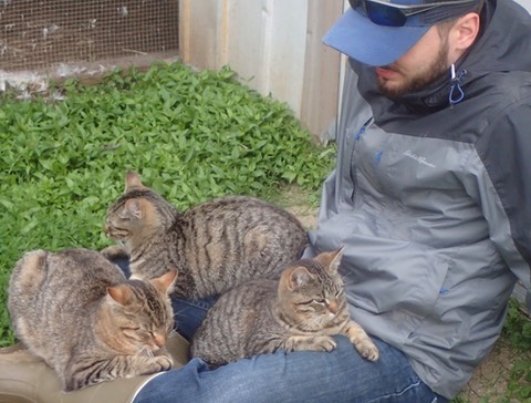 The kittens stage a sit-in on Bill’s lap:![]()