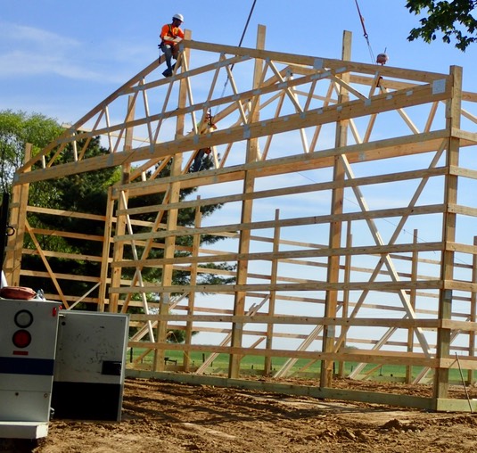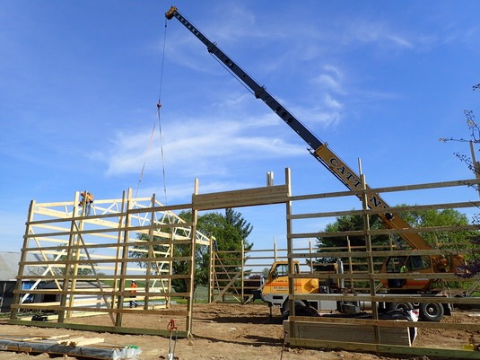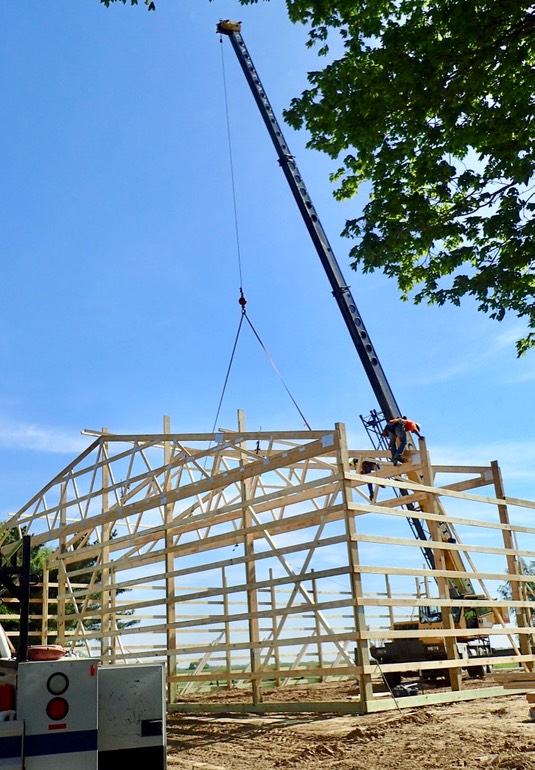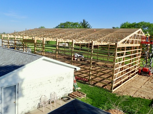 All she needs is her fly mask, and she’ll be fly-proof! 🐎 Oh, and the roof trusses of the riding arena are going up!![]()