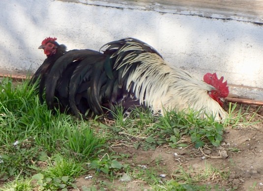 That’s so Hansel and Gretel can enjoy the day outside the coop, without the risk of a rooster-fight: