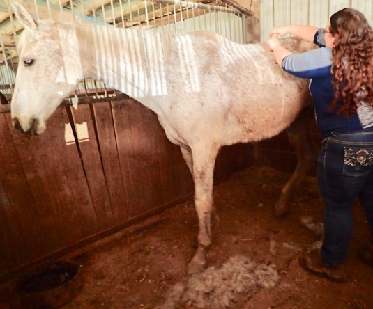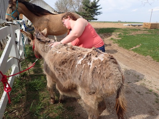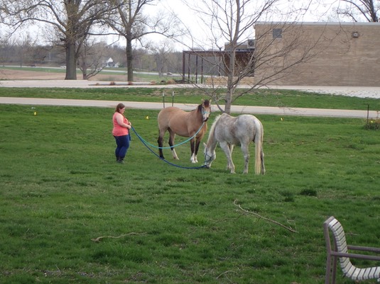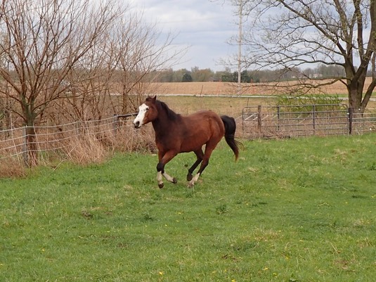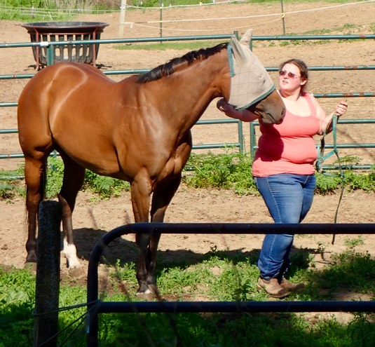 She’ll have Stormy’s stall next to Rose, who’s in Iris’s stall. Iris and Stormy will get new stalls. Here she is meeting Rose: