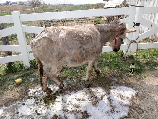 Iris will be happy when she gets her stall back from Rose (which should be soon). She’d rather eat out of her pan than a bucket.