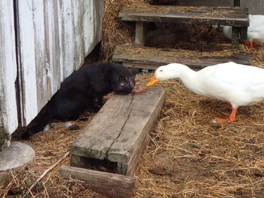 Oh, and the ducks (as usual) raid the cats’ breakfast: