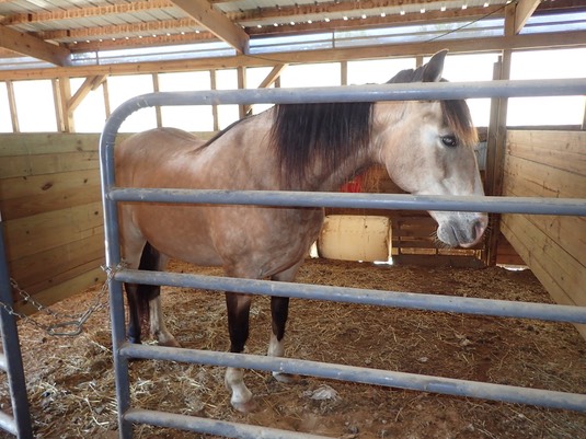 Iris’s new stall will get a new gate; but for now, she’s having her meals in it (where I can’t “help” her eat):