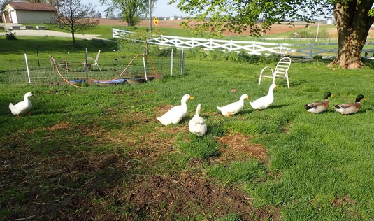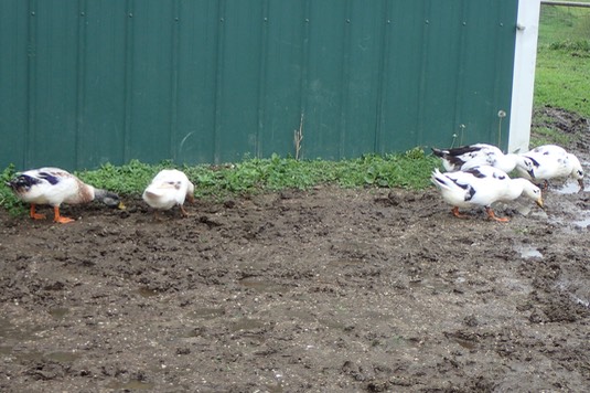 And the ducks are hunting worms in back of the stable:
