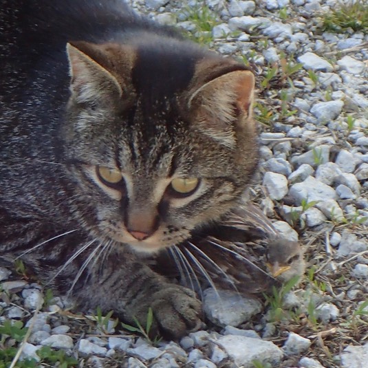 Oh, and Onslow caught a sparrow, which he’s about to let go. 🐦