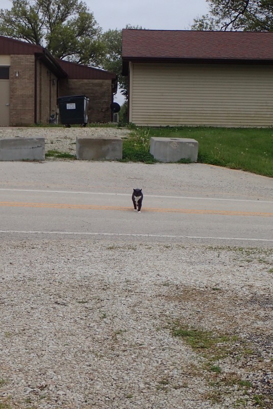 Schroeder is in the road (bad kitty!):