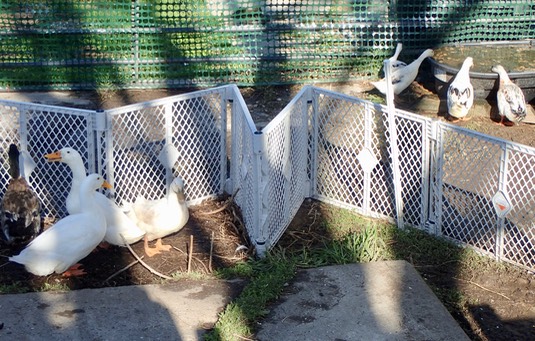 The fence divides the drakes from the hens: