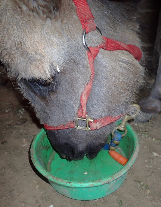 Good morning. I don’t know why I let myself get so wet, when I have half the hay barn in which to stay dry. I may look pitiful, but I’m actually feeling good, and about to tuck into breakfast: