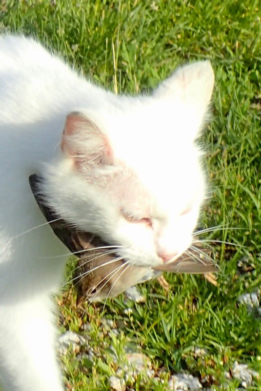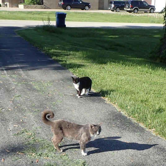 A clear, cool morning, and fresh cat food: The kitties can’t lose! 😺