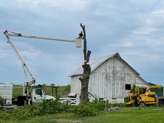 We’ll miss the tree. It was a good source of shade; but, one of these days, a storm would surely have blown it down on the hay barn.