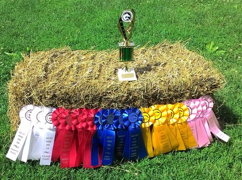 That first place trophy in the center went to Mara and Iris (Iris would say it was mostly her, naturally). But all those blue ribbons in the middle are first places, too!