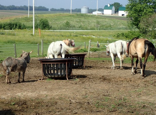 As for us, we look like we’re minding our own business, just eating hay. Actually, we’re watching the gate for a chance to escape: