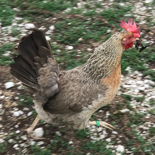 And this olive-egger is eating a baby bat (that the cats had sent to Baby-bat Heaven):