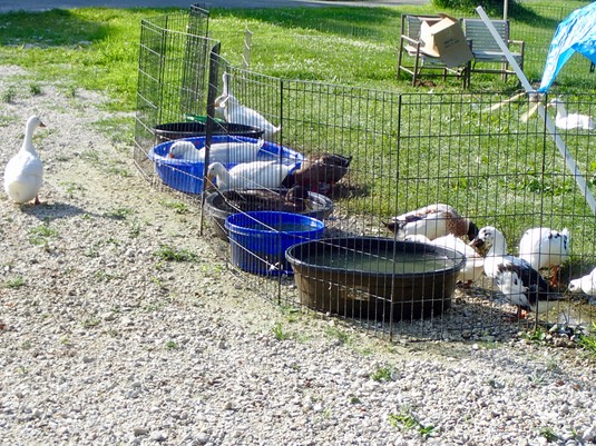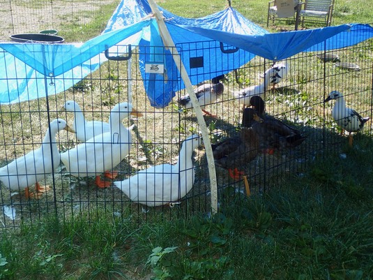 We had to move the ducks out from under the natural shade of the tree, so as you can see, we’ve set up a tarp and an umbrella. 🦆
