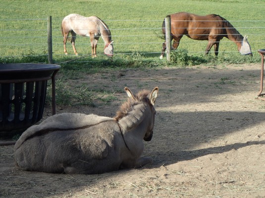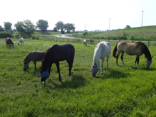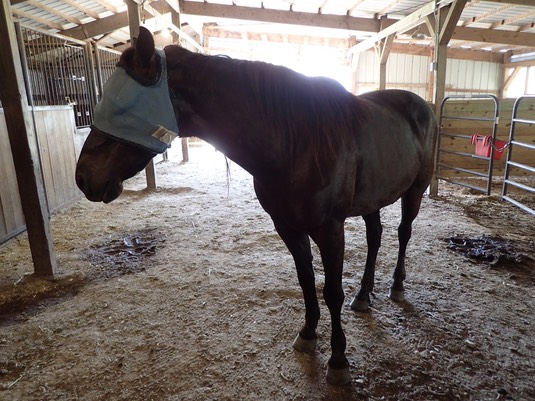 We could go out to the far pasture for some fresh grass—but the heat has been keeping us hanging around the stable for shade. 🐎