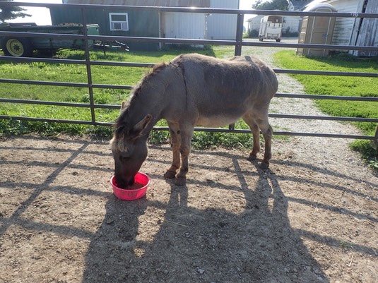 Jewel is getting to eat outside the gate, while she waits for medicine to be put on a few little cuts:![]()