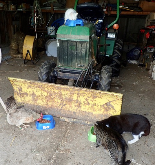 And let’s watch this olive-egger help herself to the cats’ breakfast: