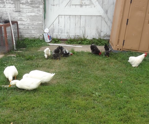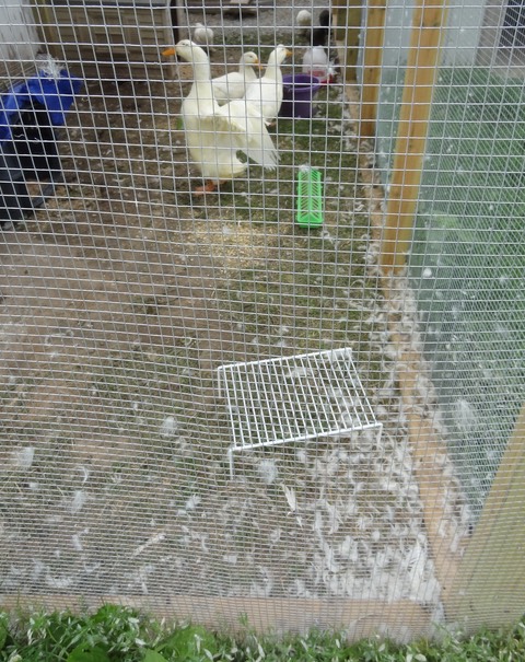 This evening, one of the brown hens upped the chicken egg count to 5. The duck egg count became 3 this morning. Since the hens outnumber Daisy 4:1, she’s still the laying champion!