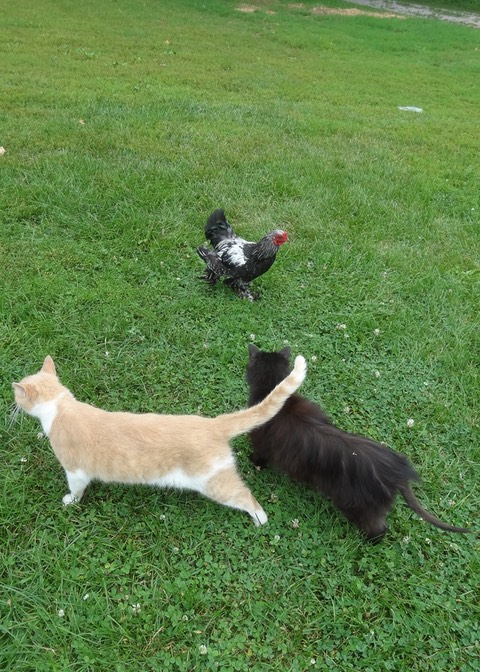 The roosters like cat food too! 🙀