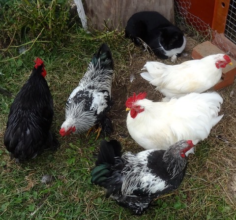 Schrödinger 😺 likes hanging out with the roosters 🐓.