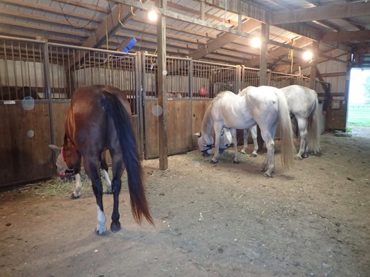 Charlie spent the night in Rose’s stall. Rose will be back tonight. She and Mary did well at the show in Cedar Rapids with 2nd and 3rd places.