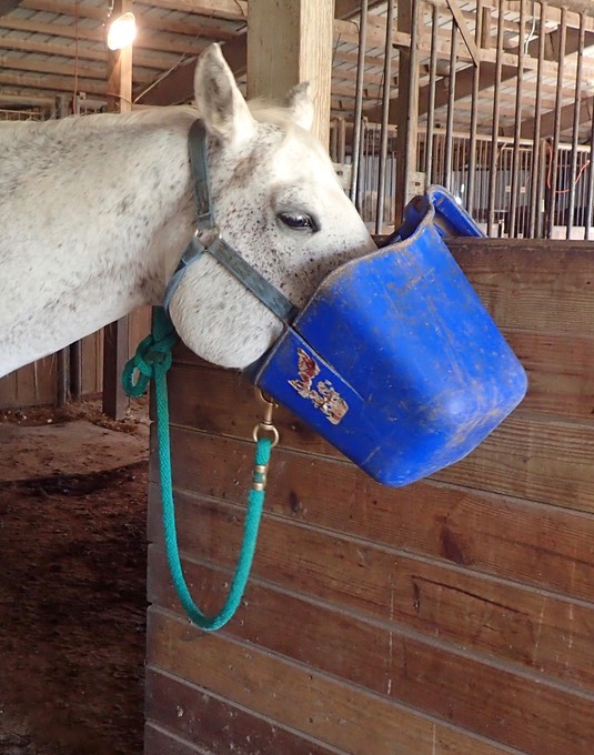 This way, we know she’s getting enough food, and we can keep medicine in her pool water. 🐴