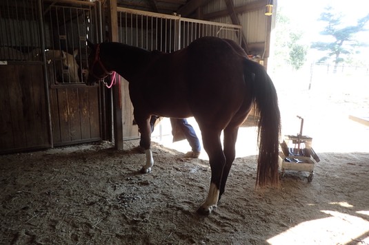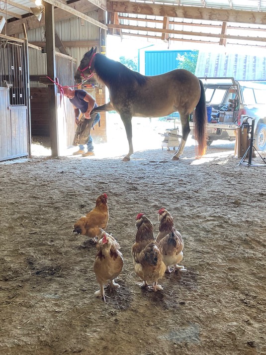 It’s a clean mask morning, and the farrier is coming to put Rose’s shoe back on: