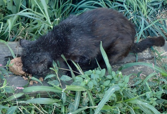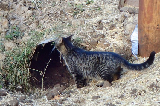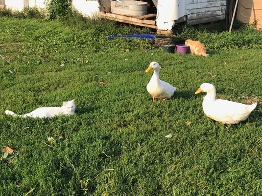 Our poultry are grateful we lock them up when the sun goes down. The cats would be lonely without someone to share their breakfast: