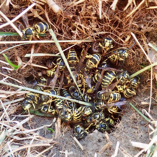 The hornets were sprayed last night. This morning, the hole was full of those who had gone to hornet heaven: