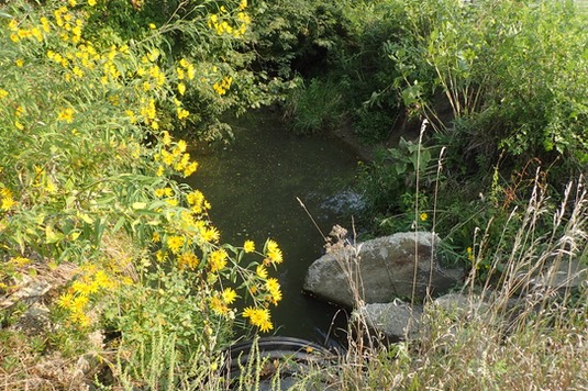 The people who put in the new utility pole have cleared out the weeds from the storm drain: