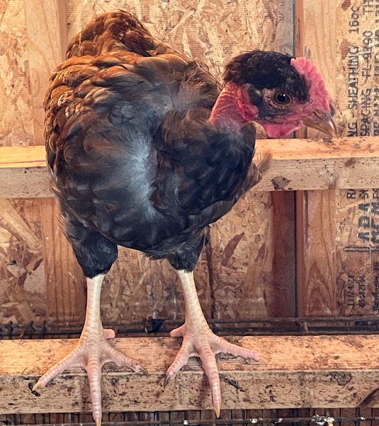 For a moment, I thought this was Turken, but it’s a Wyandotte molting: