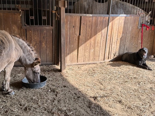We’re being fed an hour earlier today, so the sun is streaming through the stable: