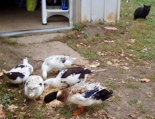 The young ducks don’t know what to think of the “chunks” in their water this morning.