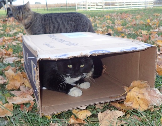 There’s not much going on this morning, except that it’s dreary and only 41℉. So here are some cats-and-boxes pictures, just for the heck of it:![]()