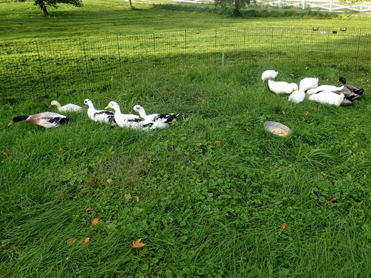 Oh the bright side, it’s our first sunny morning in a while. The ducks are happy that they have new grass:
