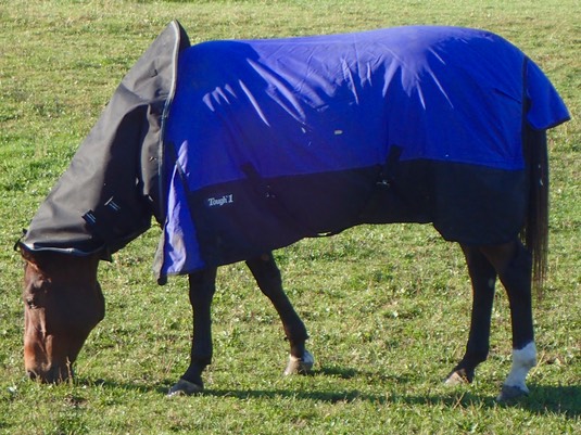 It was only 56 this morning, so some of us have our blankets on. Always-fashionable Iris is in blue: