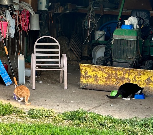 She’s feeling better today, and scampered right down from the barn to join us for breakfast! 😺