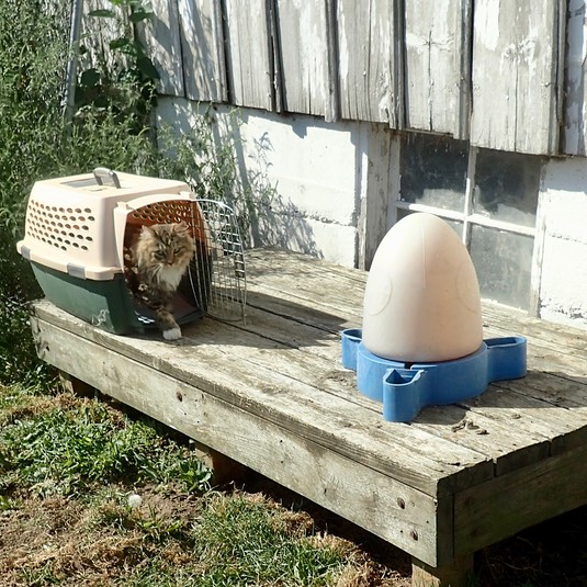 Apparently, Betty has some place to go. Betty says, “Please don’t lay an egg while I’m gone.” 🙀