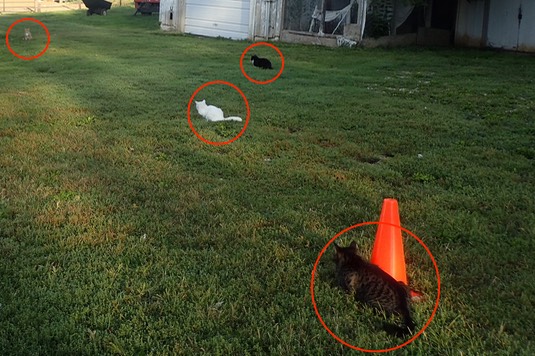 I missed you, kitties!—Oh wait!—Who’s that in the back?