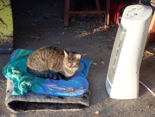 She’s keeping warm, and brought back plenty of medicine for the other cats’ sniffles. 😺