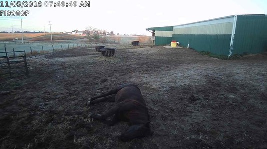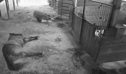 Speaking of security cameras, this one caught Charlie laying down this morning, while everyone else was up and about in the stable: