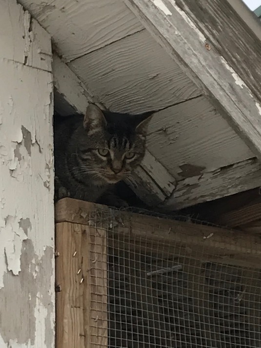 Oh, and here’s Onslow under the roof of the tractor shed: