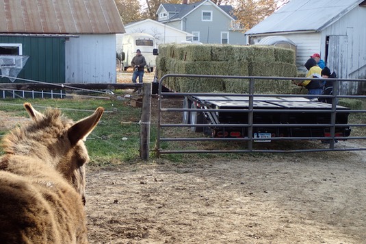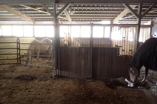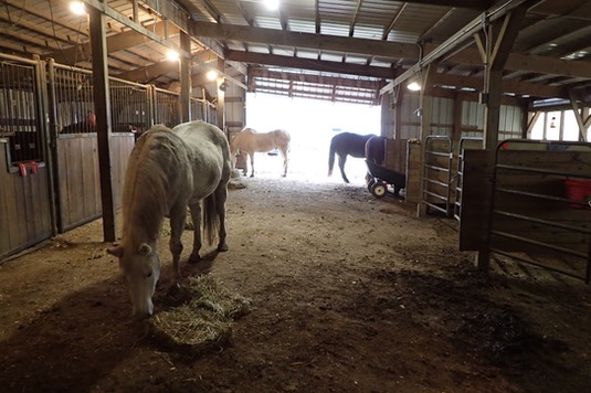 If you study it, you’ll see that poor Stormy was half-asleep with everyone else at about 4AM, when he stretched out his hind leg—sticking it in the handle of the manure cart. He must have thought someone was grabbing him, because he was very spooked! You’ll also notice me trying to stay out of the way. 🐴